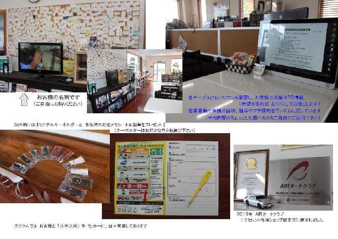 スクラムでは店内各テーブルにパソコンを配置しています なかなかわかりづらい自動車保険の説明を出来る限りわかりやすくまとめ、お客様との対話時に役立てようと思ったのが始まりですが現在ではお客様のお店のPRやイベント情報、在庫車輌の紹介、生命保険などなど広がりを見せています スクラムをご利用のお客様で、店舗PRをしたい方がいらっしゃれば是非お声掛け下さい。